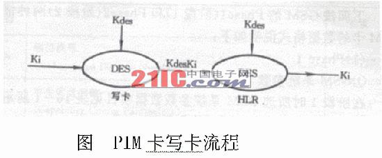 PIM卡中最敏感的數據是保密算法A3、A8算法、密約Ki、PIN、PUK和Kc。A3、A8算法是在生產PIM卡的同時寫入的,一般人都無法讀A3、A8算法;PIN碼可由客戶在手機上自己設定;PUK碼由運營者持有;Kc是在加密過程中由Ki導出;Ki需要根據客戶的IMSI和寫卡時用的母鑰(Kki),由運營部門提供的一種高級算法DES,即Ki=DES(IMSI,Kki),經寫卡機產生并寫入PIM卡中,同時要將IMSI、Ki這一對數據送入PHS網路單元AUC鑒權中心。