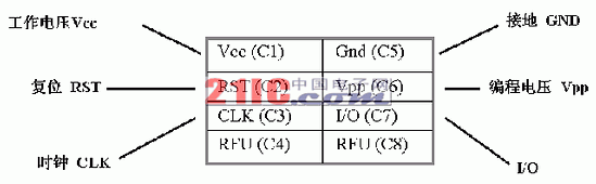 PIM卡芯片有八個觸點,與移動臺設備相互接通是在卡插入設備中接通電源后完成。此時,操作系統和指令設置可以為SIM提供智能特性。如圖所示。