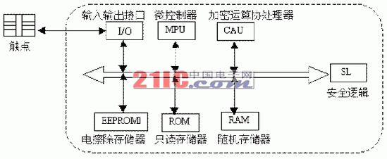 這五個模塊必須集成在一塊集成電路中,否則其安全性會受到威脅。因為,芯片間的連線可能成為非法存取和盜用PIM卡的重要線索。