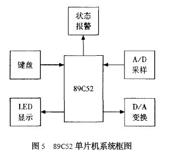 圖5為89C52單片機系統框圖,單片機通過APD采樣直流高壓輸出電壓值,CPU對此值與預值電壓比較,調整相應DPA轉換,使實際輸出電壓與預值電壓相同。