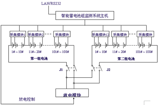 與電池巡檢儀不同,在這個系統增加了一個放電模塊,放電模塊能承受較大的沖擊電流,它接收監控主機的放電命令,接通放電回路,電池通過負載放電,同時采集模塊將采集每節電池電壓的變化,在主機中得到了每節電池內阻特性曲線。放電模塊也可作為長時間放電負載,實現對電池容量的核對性測試及整組電池的活化處理。這個系統實現對蓄電池全方面的監測和維護管理。