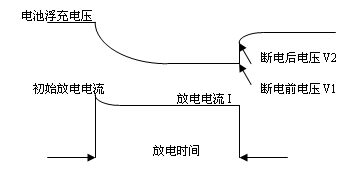 蓄電池在線內阻監測,通過電池向放電模塊瞬時放電,測量電池斷電瞬間的電壓差,計算電池內阻(R內阻=△V/I),內阻測試原理如圖3。由于在線監測中出現的端電壓監測誤差、放電過程電流波動、斷電前后電壓補捉測量技術,以及在線連接線電量衰檢等問題,內阻在線監測精度不高。目前,在國內美國ABLER便攜式內阻測試儀應用較多,它的在線式內阻測試系統測試精度與便攜式相比稍差,但與目前使用的其他產品相比還是要好些。