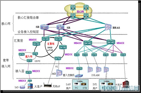 低成本、高可靠的二層的以太網匯聚;匯聚DSLAM、FTTH和LAN等寬帶接入流量,以及軟交換中AG和3G等接入層流量;統一的以太匯聚網絡,減少運營商投資成本。