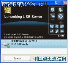 相對來講,從以太網口轉換出USB口是比較不通用的、非主流的技術。早期的類似產品稱為USB打印服務器(USB PRINTER SERVER)。之所以稱為USB打印服務器而不是USB服務器或者以太網/USB轉換器是因為這些產品生成的USB口只能夠支持USB打印機,甚至只支持某些品牌的某些型號的打印機。由于USB遠程應用中許多都是打印機,所以這些產品今天仍然廣泛應用。用電纜傳輸的以太網的最遠距離為150米。現在USB口的應用已經越來越廣泛,比如說,我們經常用U盤、USB攝像頭等。幸運的是,USB網絡服務器(也稱為:以太網/USB轉換器)技術和產品也在進步,我們對最新的一款NETWORKING USB SERVER(USB網絡服務器)的產品(如圖3)進行了測試,該產品支持USB存儲盤、USB/串口轉換器、USB攝像頭等,當然也支持USB打印機,符合USB2.0協議,也可以接USB-HUB擴展USB口。這款產品的默認IP地址為169.254.10.10,注意計算機的以太網口地址段的前2位要一樣。比如在產品的USB插座上外插U盤,配套的軟件“Lanch Networking USB Server”(如圖4)會顯示已經連接U盤。打開計算機的“資源管理器”就可以讀寫這個U盤了。如果外插USB/串口轉換器,配套軟件還會提示安裝轉換器的驅動程序。