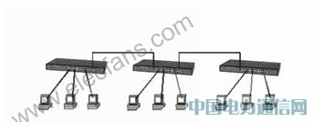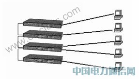 這是最常用的一種組網(wǎng)方式,它通過(guò)交換機(jī)上的級(jí)聯(lián)口(UpLink)進(jìn)行連接。需要注意的是交換機(jī)不能無(wú)限制級(jí)聯(lián),超過(guò)一定數(shù)量的交換機(jī)進(jìn)行級(jí)聯(lián),最終會(huì)引起廣播風(fēng)暴,導(dǎo)致網(wǎng)絡(luò)性能?chē)?yán)重下降。其結(jié)構(gòu)示意圖如下所示。