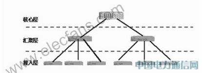 這種方式一般應(yīng)用于比較復(fù)雜的網(wǎng)絡(luò)結(jié)構(gòu)中,按照功能可劃分為:接入層、匯聚層、核心層。其結(jié)構(gòu)示意圖如下所示。