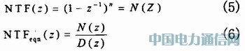 高階Delta-sigma的NTF具有一般形式(5)。從表達式可以看出,NTF的n個零點都集中直流頻率處。但是,文獻指出,如果將NTF的零點均勻地分布在信號基帶中,而不是全都集中在直流頻率處,將對量化噪聲有更好的整形效果。Delta-sigma調制器的不穩定狀態主要與調制器N-TF的帶外增益有關,為了限制NTF的帶外增益,將式(5)所示的NTF的一般表達式改寫成式(6)。