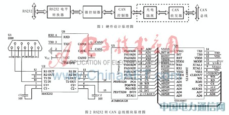 RS232串口通信與CAN通信是兩種不同的傳輸方式,無(wú)論是數(shù)據(jù)的傳輸方式還是邏輯電平的電壓表示都是不同的,本設(shè)計(jì)主要完成RS232接口與CAN總線協(xié)議之間的轉(zhuǎn)換,以及數(shù)據(jù)的雙向傳輸。設(shè)計(jì)原理如圖1所示。