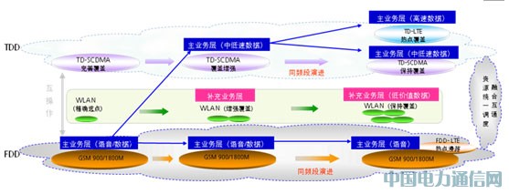 中國(guó)移動(dòng)長(zhǎng)期將面臨著四張網(wǎng)絡(luò)的同時(shí)運(yùn)營(yíng),而這四種接入制式目前都面臨的各自的問題,要解決目前的問題,使得四網(wǎng)能夠統(tǒng)一協(xié)同的運(yùn)營(yíng),首先要對(duì)四網(wǎng)要有一個(gè)清晰的定位:即“GSM主要承載話音、短信業(yè)務(wù)等基礎(chǔ)業(yè)務(wù),TD-SCDMA主要承載手機(jī)終端的移動(dòng)數(shù)據(jù)業(yè)務(wù),并同時(shí)承載部分話音業(yè)務(wù),WLAN網(wǎng)絡(luò)主要承載PC、手機(jī)及第三方WLAN終端的互聯(lián)網(wǎng)數(shù)據(jù)業(yè)務(wù)。TD-LTE將主要承載高速數(shù)據(jù)業(yè)務(wù),并具備承載話音業(yè)務(wù)功能”,在這個(gè)定位的基礎(chǔ)上,加強(qiáng)多網(wǎng)協(xié)同,使得每張網(wǎng)絡(luò)各司其職,充分發(fā)揮各自的優(yōu)勢(shì),做到網(wǎng)絡(luò)效率最高,成本最低,將是多網(wǎng)協(xié)同的最終目標(biāo)。