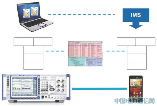 為了保證不同解決方案所設(shè)計的功能和性能,在網(wǎng)絡(luò)內(nèi)實際使用期間仍然具備可用性,必須在實驗室內(nèi)進(jìn)行一系列測試。圖4所示測試設(shè)置可用于測試功能。該例中的測試儀器為羅德與施瓦茨公司的R&S?CMW500,它可以仿真測試所需要的所有移動網(wǎng)絡(luò)功能。除了LTE之外,它還包括各種2代和3代移動無線電技術(shù)(含GSM,UMTS和cdma2000?)。