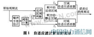 空域濾波有中值濾波、基于小波變換的濾波、系數自適應濾波等經典濾波方法,都取得較好的圖像處理效果,但在視頻應用中,由于空域濾波沒有充分利用時域的信息,不能取得最佳效果。時域濾波由于考慮了幀間圖像的相關性,具有更好的效果,但是此類方法只適用于靜止目標,對運動目標會產生偽影等時域模糊現象。對于微位移目標,該方法會引起目標邊緣的虛像甚至偽像;對于大運動目標,可能導致目標圖像不可識別。在后兩種情況下,圖像的信噪比會降低。