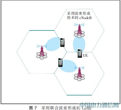 (a)聯合調度/波束形成,在這種方案中,實際傳輸僅來自于單個蜂窩/扇區,且性能優勢是通過與其他蜂窩進行協同得到的。在協同波束形成的情形中,目標是采用某種方式來引導在重疊時間/頻率資源調度的波束。在這種方式中,能夠進行數據傳輸,且可以避免空域內的干擾,如圖7所示。此處面臨的挑戰與精確環境信息的可用性有關,該信息支持eNodeB處的智能決策。