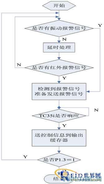 系統流程圖如圖4所示。主程序包括系統初始化、循環檢測。延時子程序用來產生一定的延時,然后啟動報警器以防止誤報警:主程序用來控制報警電路、短消息發送電路。當單片機接收到中斷報警信號后由短信發送電路及時向車主發送報警消息。如果一切正常,程序處于循環等待中。