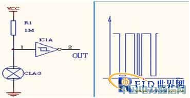 圖3是用MOST非門電路組成的震動檢測電路,其輸出的波形是幅度相同的震動脈沖信號。該信號送到單片機,由單片機軟件檢測震動信號的真偽,通過脈沖寬度、脈沖數量判斷震動的類型。如果使用端口可編程的單片機,端口編程為輸入狀態時,可以直接檢測震動信號,省去整形放大電路。