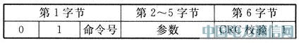每幀命令都以“01”開頭,然后是6位命令號和4字節的參數(高位在前,低位在后),最后是7位CRC校驗和1位停止位“1”。