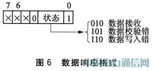 寫入數據后,SD卡會發送1字節的數據響應來反饋數據寫入的情況,其格式如圖6所示。當數據正確寫入SD卡后,數據響應為0x05。最后讀數據總線,寫數據忙時等待,直到總線為高電平。
