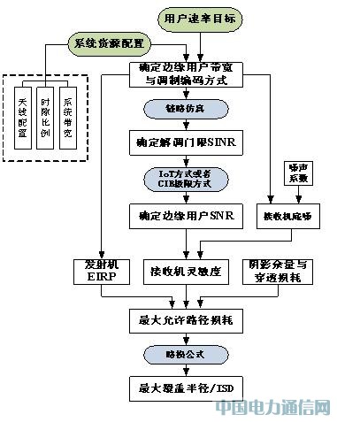 同時,在預規(guī)劃功能中,LTE云平臺支持多種規(guī)劃準則,全面評估各種傳播環(huán)境,支持空間信道模型及射線追蹤建模,并引入了覆蓋與容量進行迭代估算的過程。該迭代思想主要基于以下原理:業(yè)務負荷表示業(yè)務資源的占用率,與系統(tǒng)的用戶容量、話務模型和業(yè)務模型有直接的關系,而用戶容量則與覆蓋區(qū)域的面積或小區(qū)覆蓋半徑有直接的關系。在區(qū)域用戶密度一定的情況下,小區(qū)覆蓋半徑越大,覆蓋范圍內(nèi)用戶容量越大,從而系統(tǒng)負荷相對越大;反之小區(qū)覆蓋半徑越小,則覆蓋范圍內(nèi)用戶容量越小,系統(tǒng)負荷也相對越小。因此由用戶容量確定的系統(tǒng)負荷,又反過來影響鏈路預算的小區(qū)覆蓋半徑,即系統(tǒng)負荷越大,則系統(tǒng)干擾越大,將導致鏈路預算的覆蓋半徑越小;而系統(tǒng)負荷越小,則系統(tǒng)干擾越小,將導致鏈路預算的覆蓋半徑越大。如圖3所示,LTE動態(tài)云規(guī)劃充分考慮控制信道與業(yè)務信道的相互影響,基于容量準確評估系統(tǒng)負荷,實現(xiàn)自適應優(yōu)化控制信道配置與用戶容量進行迭代估算,進一步準確衡量規(guī)劃區(qū)域負荷水平。`