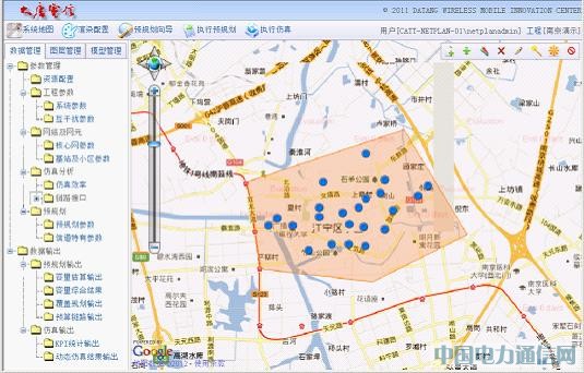 南京是工信部批準的六個TD-LTE規(guī)模實驗城市之一。其中大唐針對中國移動集團公司要求的核心區(qū)域完成了湖南路、市政府、奧體商務區(qū)、仙林大學城、江寧科技園、江寧大學城六個區(qū)域以及機場高速為主體的TD-LTE覆蓋方案。本次試驗網(wǎng)的200個宏站總覆蓋區(qū)域約50平方公里左右,平均站間距在500米左右,共站率在86%左右。LTE動態(tài)云規(guī)劃解決方案為實驗網(wǎng)建設提供合適的規(guī)劃方法和工具提供保障,保證實驗工作高效、有序的進行。圖7為南京試驗網(wǎng)在江寧科技園的規(guī)劃區(qū)域。