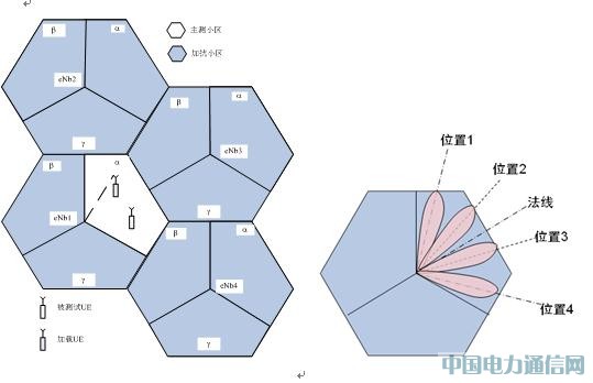 OCNG(OFDMA Channel Noise Generator)或稱模擬打樁方式,主要針對下行控制信道和業(yè)務信道進行,來模擬下行的干擾程度,而上行一般采用實際加載的方式來實現(xiàn)加擾。針對下行控制信道而言,主測小區(qū)發(fā)送真實數(shù)據(jù),其余小區(qū)在下行控制信道上以OCNG方式滿功率發(fā)送無用數(shù)據(jù),發(fā)送數(shù)據(jù)占用的CCE位置隨機;針對下行業(yè)務信道而言,一個小區(qū)設定4個波束,角度均勻分布在扇區(qū)內(nèi),各波束的角度保持不變。4個波束每個波束占用的PRB數(shù)目相等但按一定規(guī)則循環(huán),各波束占用的PRB組位置變化周期不大于10ms。加擾比例為4個干擾波束總共占用的PRB比例(如:50%加擾,即干擾波束隨機占用總共50%PRB),每個PRB采用最大功率(PRB功率均分)。控制信道和業(yè)務信道的模擬打樁方式如圖8所示。