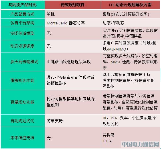 綜上所述,LTE動態(tài)云規(guī)劃解決方案相對于傳統(tǒng)規(guī)劃軟件優(yōu)勢如表1所示