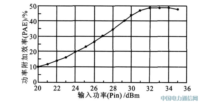 其中,POU T 為射頻輸出功率,PIN 為射頻輸入功率,P INQ 為直流輸入功率。它既反應了直流功率轉化為射頻功率的能力,又反應了放大射頻功率的能力。