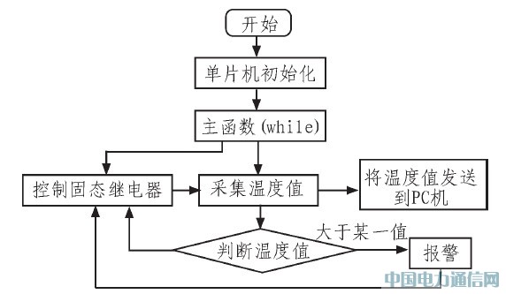 本系統(tǒng)主要采用高性能AVR單片機,GTJ4-10A固態(tài)繼電器,DS18B20溫度傳感器,報警輸出電路。主要系統(tǒng)電路圖略。