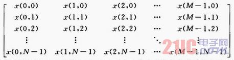 矩陣的M列分別表示線陣天線的M個陣元,N行分別表示接收端信號高速采集卡以一定采樣頻率在信號一個脈沖周期中采集到的N個采樣點。