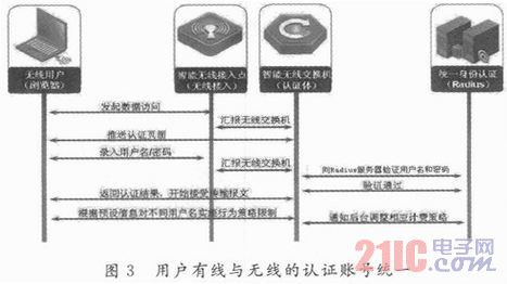 對于大規模部署無線網絡的環境,最合適的入網認證方式就是基于Web的認證和基于802.1x的認證方式。采用基于Web的認證方式,無線網絡的認證需要能夠與有線網絡相融合。無線控制器本身就能很好地支持基于Web的認證功能,其可以作為全網Web認證的分布式認證,針對無線用戶進行Web認證,后臺將有線網絡的Web認證網關作為Radius服務器進行聯動,就可以保證全網用戶有線與無線的認證賬號統一,而此過程中,用戶無需安裝任何客戶端產品,利用標準的瀏覽器即可完成上網登錄。