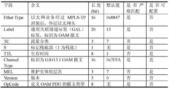 表1 采用G.8113.1的PTN OAM報文編碼格式字段描述