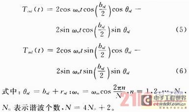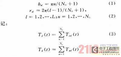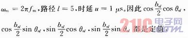 Jakes在參考文獻(xiàn)中介紹了一種單徑衰落信道的仿真,且在此基礎(chǔ)上提出了一種對(duì)頻率選擇性衰落信道的仿真方法。在原來(lái)第l徑中的多普勒相移bnl的基礎(chǔ)上,加上一個(gè)附加相移rnl,成為新的多普勒相移bnl+rnl,且保持其他參數(shù)不變。為了保證各個(gè)可分辨多徑之間相互獨(dú)立,所以必須選擇合適的bnl和rnl,其中比較簡(jiǎn)單的一種方法是: