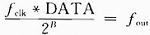 ,其中fclk為開(kāi)發(fā)工作時(shí)鐘,DATA為輸入的頻率控制字,B為DATA的位寬,fout為所得的頻率。
