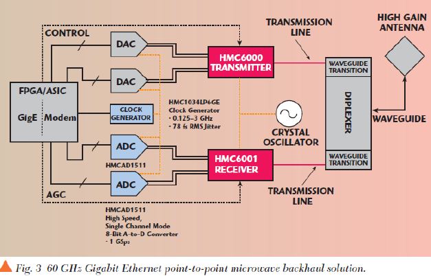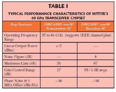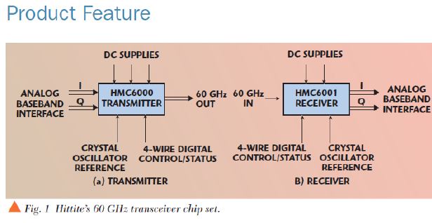 很多重要的開發開始用57-64GHz頻段,Hittite現在可以提供高集成的硅芯片方案。Hittite的HMC6000/6001芯片組不僅解決很多毫米波頻率關鍵的技術挑戰,而且可以提供數Gbps的60GHz通信turn-key連接方案