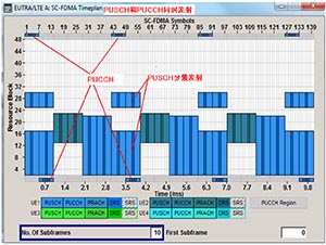再例如LTE-A的上行方向, 要求能夠?qū)崿F(xiàn)PUSCH分簇,并且支持PUSCH/PUCCH同時(shí)發(fā)送,圖5是R&S的信號源SMU200A產(chǎn)生LTE-A信號時(shí),同時(shí)生成的資源分布圖,通過該圖能夠看到,SMU200A能夠輕松實(shí)現(xiàn)這些特性。