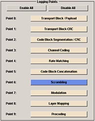 上文介紹了SMU200A能夠產(chǎn)生符合LTE至LTE-A各個(gè)版本的上下行信號。此外,SMU200A還提供基帶算法驗(yàn)證功能。目前,國內(nèi)LTE Release 8的設(shè)備已經(jīng)比較成熟,各廠商已經(jīng)開始LTE Release 9 和 Release 10的研發(fā)工作,而在研發(fā)初期,基帶算法研發(fā)人員對3GPP規(guī)范給出的算法理解可能會有偏差,R&S的信號源SMU200A為此提供了數(shù)據(jù)驗(yàn)證功能,研發(fā)人員可以將自己做的數(shù)據(jù)向量與信號源做的數(shù)據(jù)向量進(jìn)行比對,SMU200A可以在9個(gè)不同的數(shù)據(jù)處理節(jié)點(diǎn)位置產(chǎn)生數(shù)據(jù)向量用于比對,這有助于研發(fā)人員快速定位問題。圖6顯示了SMU200A能夠在9個(gè)不同的數(shù)據(jù)處理產(chǎn)生數(shù)據(jù)向量。