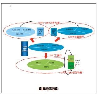 G900原網(wǎng)絡(luò)承載的業(yè)務(wù)量因Refarming導(dǎo)致G900配置明顯下降,Refarming后的G900配置無(wú)法滿足原有的業(yè)務(wù)量需求。這種因配置變化導(dǎo)致的容量無(wú)法承載現(xiàn)象,就需要進(jìn)行容量遷移。話務(wù)流向如圖所示。