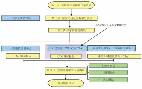 圖1 中國(guó)CDMA手機(jī)入網(wǎng)測(cè)試基本流程圖