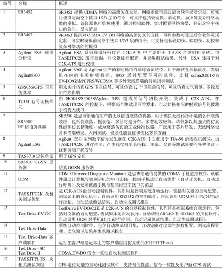 表2 CDMA手機(jī)入網(wǎng)測(cè)試實(shí)驗(yàn)室測(cè)試所需設(shè)備及軟件