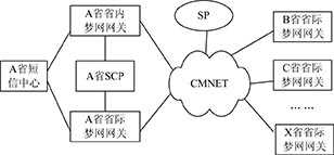 圖1 短消息網(wǎng)關(guān)在通信網(wǎng)中的組網(wǎng)情況