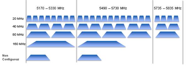 802.11ac可支持5 GHz波段并強制包括20、40和80 MHz帶寬。支持160 MHz當前為可選項。可選項還包括非連續80+80 MHz TX和RX帶寬。