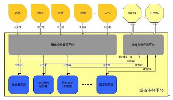 增值業(yè)務(wù)平臺作為奔流互聯(lián)網(wǎng)電視解決方案里一個重要平臺,與增值業(yè)務(wù)提供商的增值業(yè)務(wù)服務(wù)器、機(jī)頂盒一起提供豐富的業(yè)務(wù)種類,將增值業(yè)務(wù)提供商的服務(wù)下發(fā)到并呈現(xiàn)到客戶端,并管理用戶以及提供商產(chǎn)生的各類信息。包括信息服務(wù)、消息系統(tǒng)、視頻通信系統(tǒng)、搜索系統(tǒng)和游戲等等。同時,通過將各個增值業(yè)務(wù)服務(wù)器的能力集封裝,向更多的第三方開放系統(tǒng)能力,提供增值業(yè)務(wù)開發(fā)接口,吸引更多的開發(fā)者來為互聯(lián)網(wǎng)電視系統(tǒng)開發(fā)應(yīng)用。增值業(yè)務(wù)平臺要求具有可擴(kuò)展性,可滿足將來新型增值服務(wù)的實(shí)現(xiàn)、接入和運(yùn)營需要。