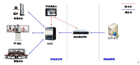 智真會議系統(tǒng)與安防系統(tǒng)融合,在智真會議中可以任意調(diào)用安防系統(tǒng)和圖像。;