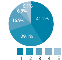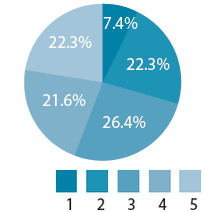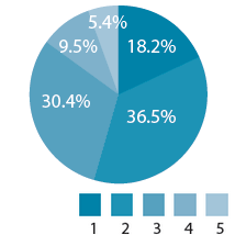 圖5 受訪視頻企業/機構對“目前最大的問題是對于OTT視頻的保護力度不夠,盜版盛行”的緊迫性排名的調研結果。圖例中:“1”代表“認為最緊迫”,“5”代表“認為最不緊迫”。