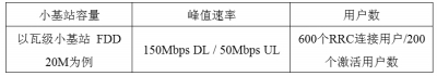 而宏站覆蓋面積大,典型部署為正六邊形覆蓋。3GPP規(guī)定了典型宏站場(chǎng)景的NGMN case1/case3模型,可以用于宏站的容量估算。表2以瓦級(jí)小基站為例,區(qū)分峰值速率和用戶數(shù),確定在LTE FDD 20M帶寬下小基站的容量能力。