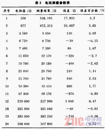 設計的RLC測量儀的電阻測量范圍為50 Ω~20 MΩ,誤差在5%以內,電感測量范圍為1 mH~1 H,誤差在為8%以內,電容測量范圍為100 pF~50μF,誤差在5%以內。