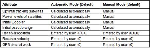 只要使用工具組中的「自動模式 (Automatic mode)」,即可囊括大多數的 GPS 模塊作業,并可透過程序設計的方式,計算都卜勒與隨機距離信息;當然,此功能亦提供手動模式。在手動模式 (Manual mode) 中,使用者可個別指定每組人造衛星的信息。圖 4 即顯示此 2 種作業模式所提供的輸入參數。