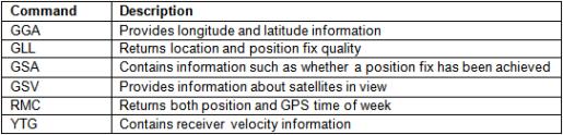 由于多款接收器可使用合適的軟件,讓用戶呈現如經度與緯度的信息,因此需要更標準化的方式進行自動量測作業。還好,目前有多款接收器均可透過眾所周知的 NMEA-183 協議,以設定對 PXI 控制器發出訊號。如此一來,接收器將可透過序列或 USB 連接線,連續傳送相關指令。在 NI LabVIEW 中,所有的指令均可轉換語法,以回傳衛星與定位信息。NMEA-183 協議可支持 6 種基本指令,并各自代表專屬的信息。這些指令即如下表所示: