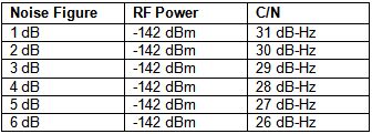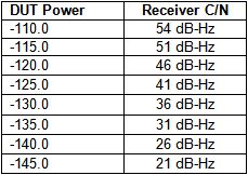 假設衛星功率穩定,則可發現由接收器回報的 C/N 比,幾乎就等于接收器的噪聲指數函式。下表顯示可達到的多樣 C/N 比值。