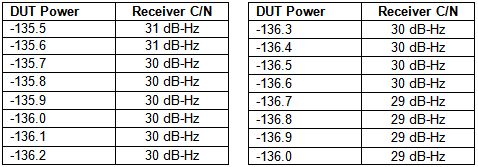 當透過仿真的多組衛星波形測試接收器時,則可針對接收器所提供的 C/N 比值進行關聯,以再次評估所需的 RF 功率。