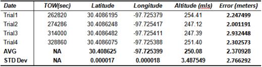 而針對我們所使用的接收器而言,其水平定位最大誤差為 5.2 公尺,水平定位平均誤差為 1.5 公尺。而透過圖 18 所示,我們所使用的接收器均可達指定的限制之內。