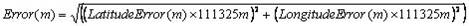 若要量測水平定位的精確度,則必須根據經、緯度信息進而了解相關錯誤。由于這些指數均以「度」表示,因此可透過下列等式轉換之: